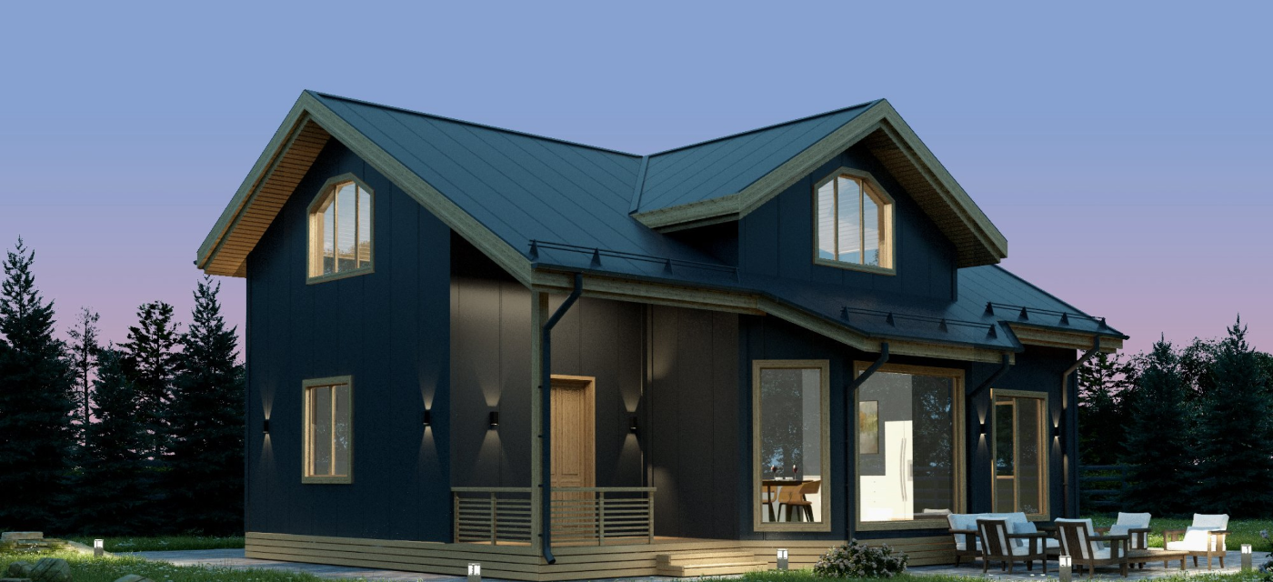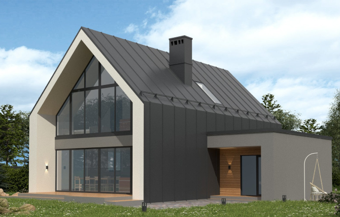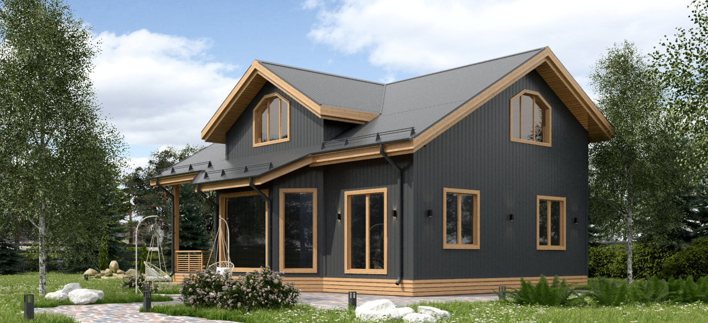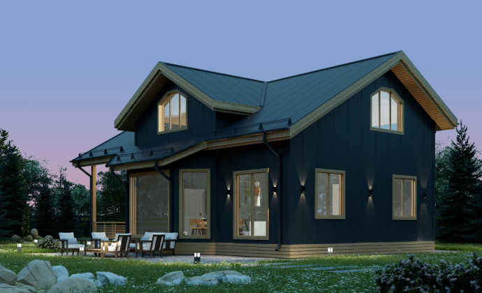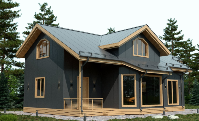 ДОМЛЭНД ЭРКЕР-2-154 удобный, компактный дом в классическом стиле, каркасный дом из SIP панелей, который можно построить в течение 30 дней. Дом имеет два этажа, на первом этаже расположены гостиная, кухня, санузел и холл. На втором этаже комнаты отдыха. Для строительства дома используется SIP панель толщиной 174 мм. При строительстве применяется автоматизированная технология, что позволяет вести строительство в любое время года. Проект дома предусматривает, что строительство может проводиться в 2 этапа.